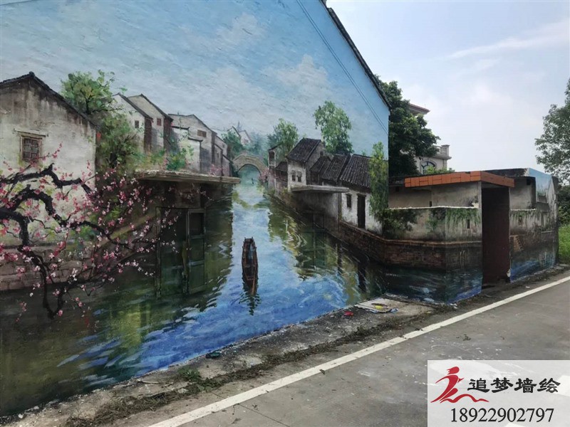 墻繪項目介紹: 江門鶴山這個項目的彩繪在不同的墻面設計不同的彩繪圖案。我們設計師以油畫風格為主,用各種各樣和諧的鄉村場景把畫面做的精彩生動,色調明快,協調統一,展示了符合鄉村氣息的內容。